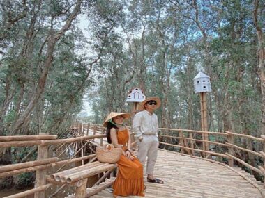 Du khách di chuyển theo nhịp chèo chậm rãi của những cô lái đò trong chiếc áo bà ba len lỏi giữa các lối đi nhỏ xuyên qua khu rừng tràm, ngắm nhìn những mảng bèo xanh ngát trải dài. Ngoài ra, du khách có thể khám phá 3 cây cầu với sự độc đáo trong thiết kế là cầu Kiều, cầu Tre Vạn Bước, Cầu Tình Yêu.