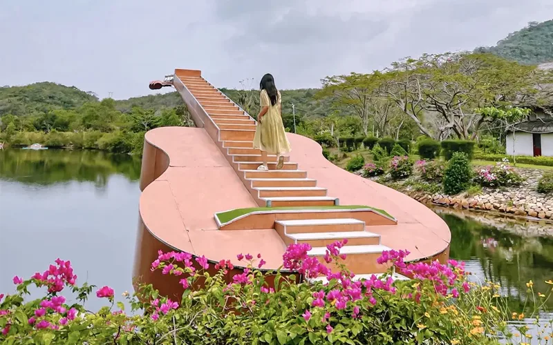 - Vườn tình yêu – vườn trái tim, con đường hoa giấy