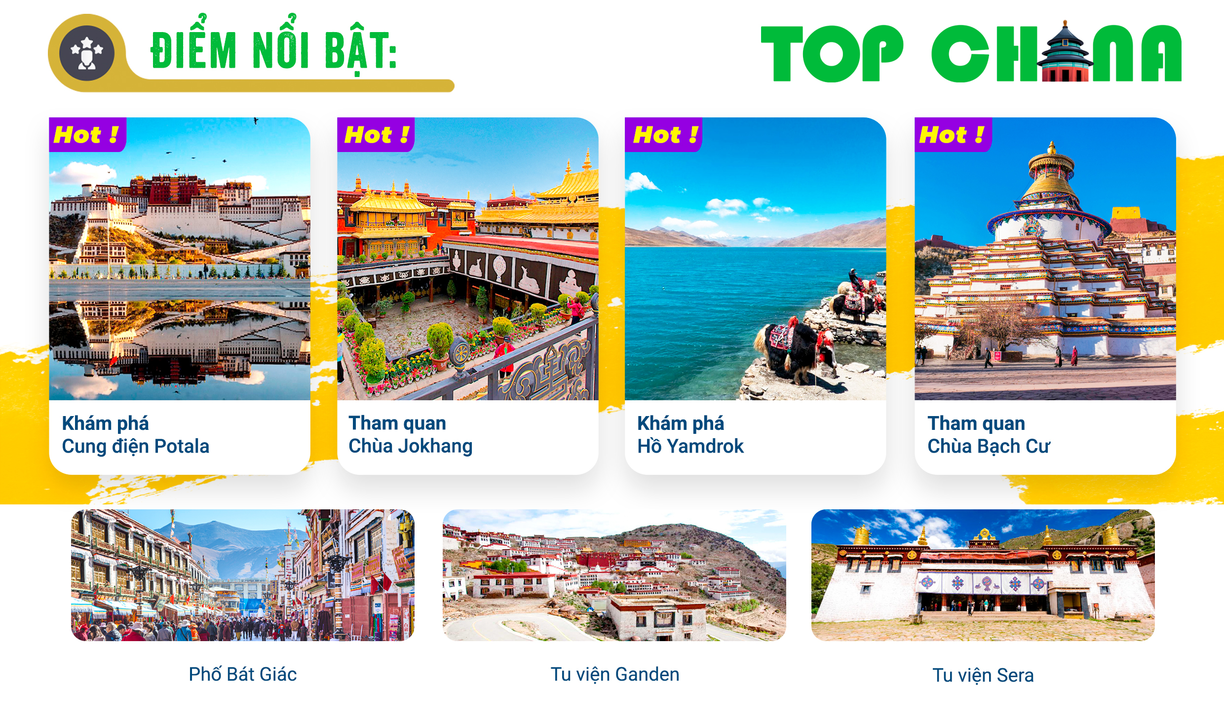 - Sau bữa trưa, đoàn tiếp tục di chuyển tham quan Chùa Jokhang (Đại Chiêu Tự) – là ngôi chùa theo Phật giáo Mật Tông Tạng truyền nằm trong trung tâm phố cổ Lhasa, nằm trong danh sách di sản thế giới của UNESCO từ năm 2000 thuộc Lhasa, là một ngôi chùa nổi tiếng ở Barkhor. Chùa nằm trên đường Bát Giác Nhai (Bakhor Square ) – lấy Đại Chiêu tự làm trung tâm. Đối với người Tây Tạng đó là ngôi chùa linh thiêng nhất nước và là nơi diễn ra ngày hội chùa Đại Chiêu lớn nhất của người Tạng . Chùa do vua Tùng Tán Cán Bố xây vào thế kỷ thứ 7 (năm 647) khi vương triều này hưng thịnh nhất.